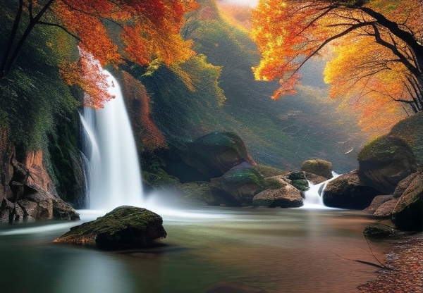 **隐藏机位推荐:**从玻璃桥末端绕行至左侧,90°俯拍飞瀑冲击深潭的瞬间,航拍爱好者可在此捕捉岩壁上斑驳的“秋日金叶倒影”。高冠瀑布必去三个景点攻略中,这里是摄影达人的秘密基地。